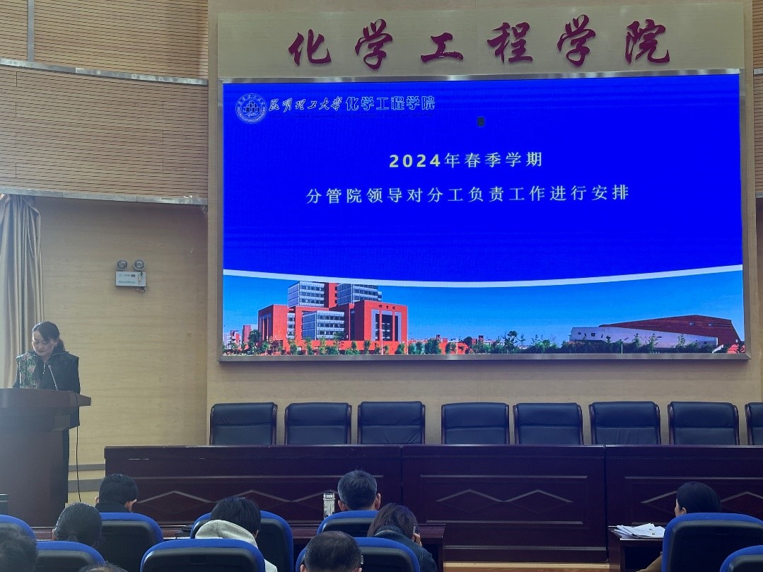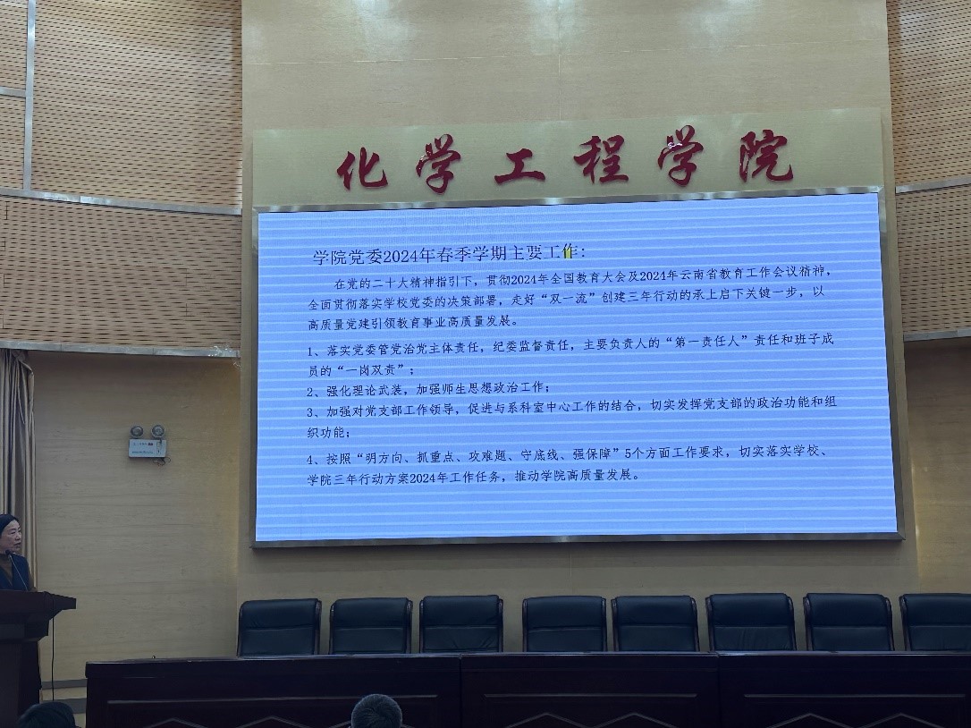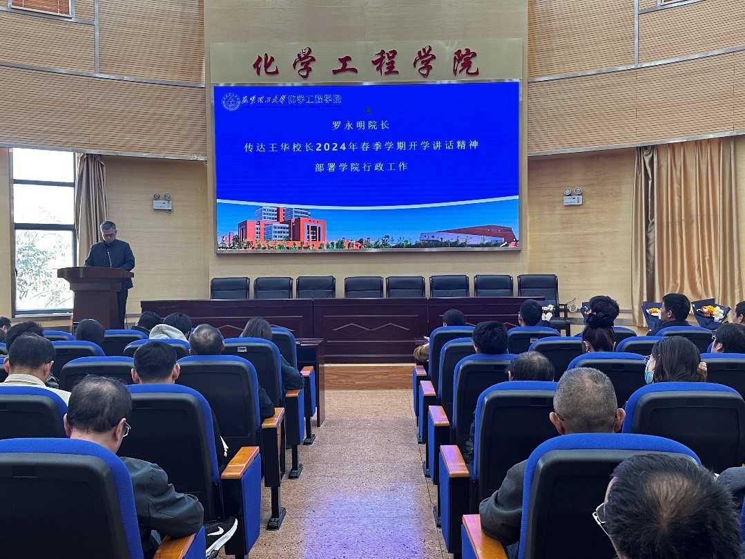 在化工楼100报告厅召开2024年春季学期全院大会,学习唐家华书记、王华校长在2024年春季开学中层干部会议上的讲话,研究部署新学期重点工作。本次会议由党委书记李云燕主持,化工学院班子成员和全体教职工参会。