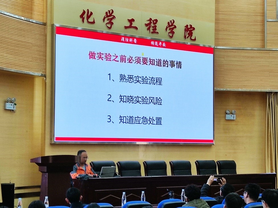 李宝才教授结合自身多年丰富的工作经历和所见所闻,用典型安全事故实例告诫师生要高度重视安全工作,增强安全防范意识,同时就师生在实验室常见的安全隐患及注意事项进行了悉心讲解。