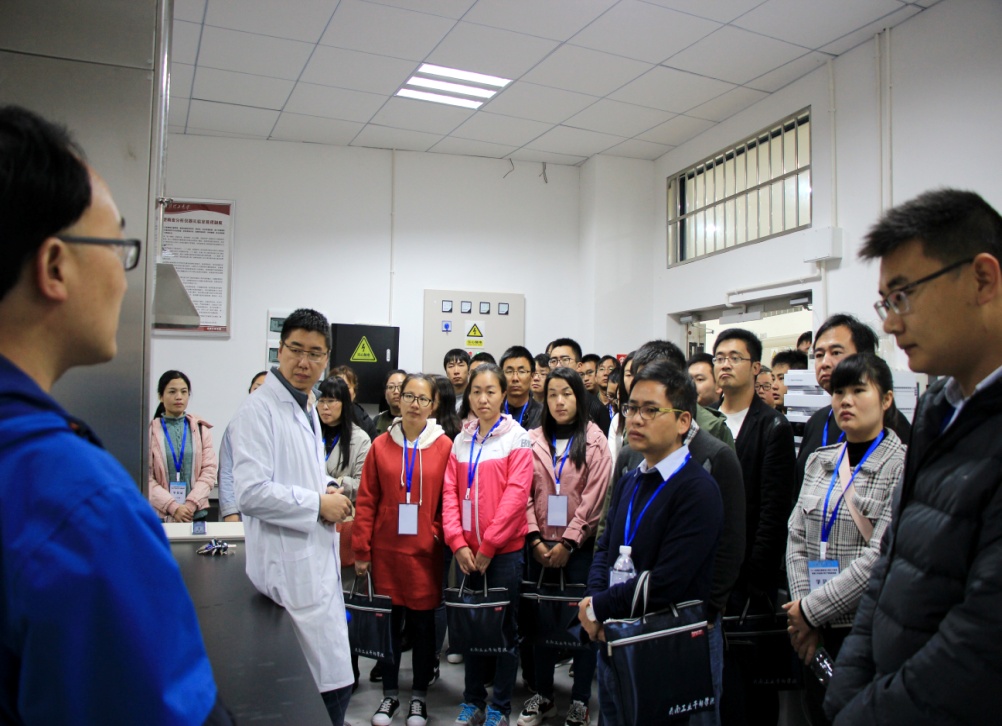 10 月30日,云锡化工40余名专业技术人员人员到实验中心进行交流学习。学院分管领导及相关实验室负责人在实验室现场组织了对大型精密仪器实验室、化工原理实验室、轻化工程专业实验室、化工专业实验室及装控专业实验室的现场交流学习。