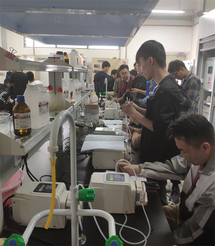 化工专业实验和能化专业实验是的相关专业的主要专业课程之一,实验学时分别为64学时和48学时,本年度各开设8个实验项目,相关实验主要在化工楼101、114、117、118、201、317、323、402、406、410、417等11间化工、能化专业实验室开设。