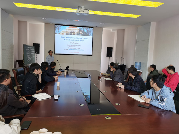 学术报告中,严清峰副教授重点介绍了黑磷单晶的制备及其生长机理,并针对黑磷在光催化、生物医药等方面的应用做了详细的阐述。严副教授的报告生动、有趣,介绍黑磷制备及应用的同时,提出仍有一些问题有待解决和研究。报告会后,部分老师和研究生就相关主题进行了交流和讨论。
