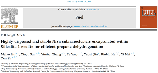 上述研究成果以《Highly dispersed and stable NiSn subnanoclusters encapsulated within Silicalite-1 zeolite for efficient propane dehydrogenation》为题发表在能源领域TOP学术期刊《Fuel》上。色色视频